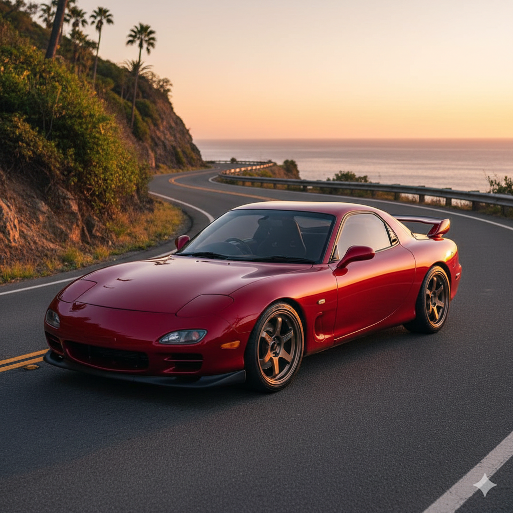 平成のスポーツカー黄金期において、三菱とスバルが「速さ」を競い合っていた横で、マツダは「美しさ」と「理想」を追い求めていました。それが、アンフィニ RX-7、のちのマツダ RX-7 (FD3S型)です。